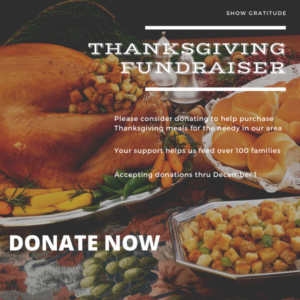 • We fundraise to provide meals and grocery gift cards for Thanksgiving meals